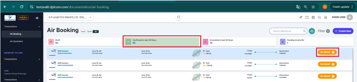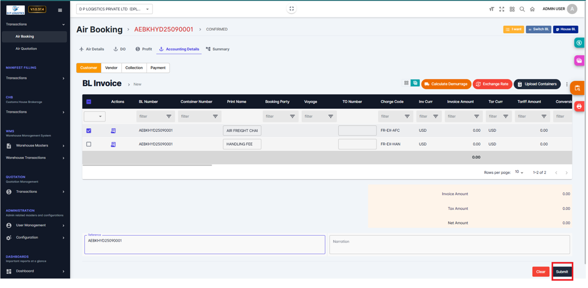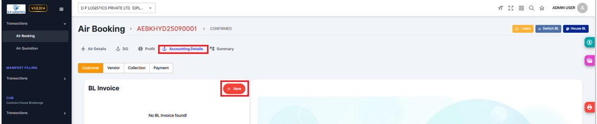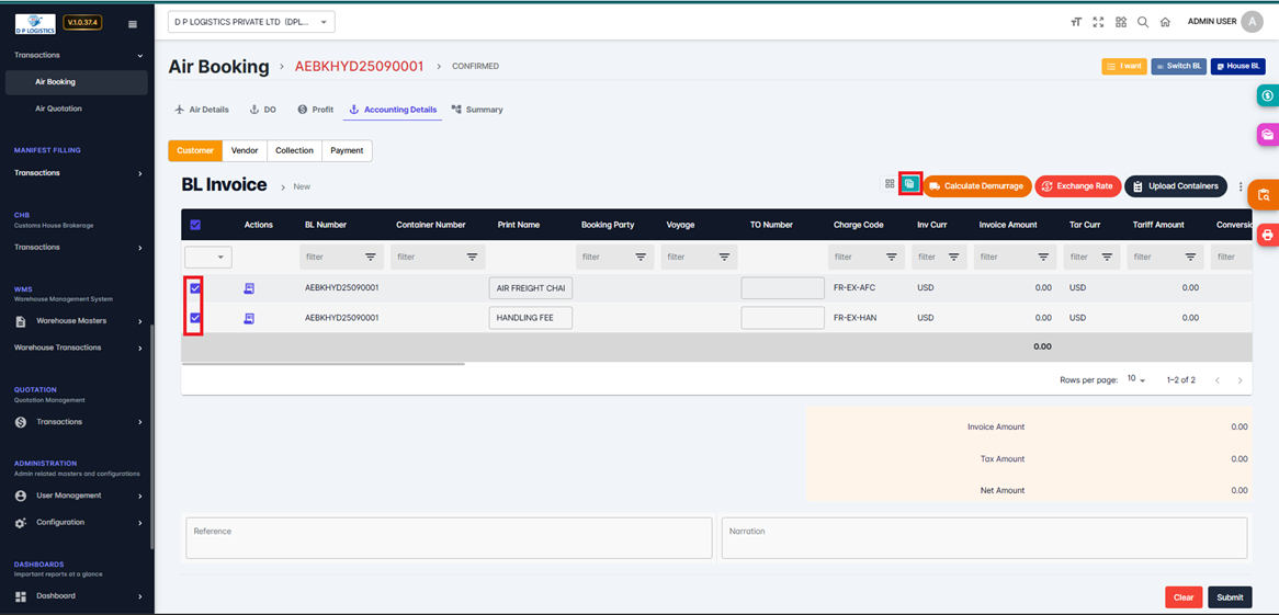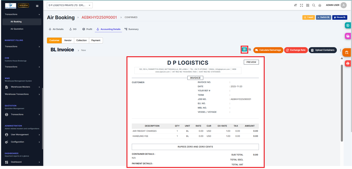 The Air Booking BL Invoice module in ZEALIT 2.0