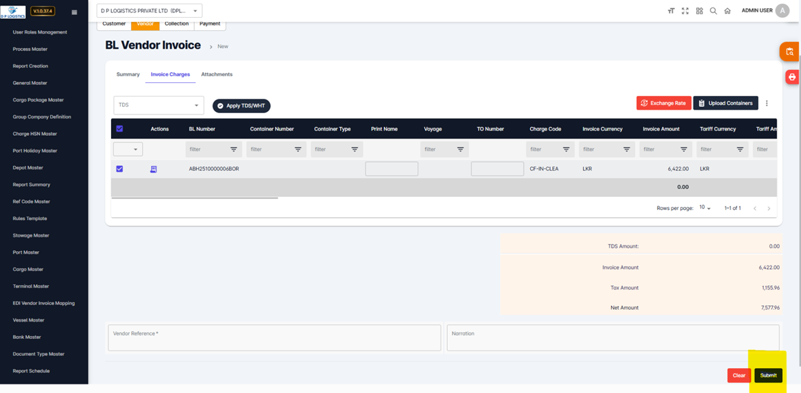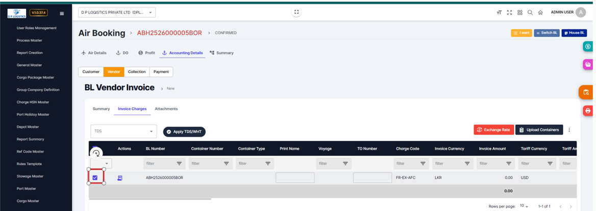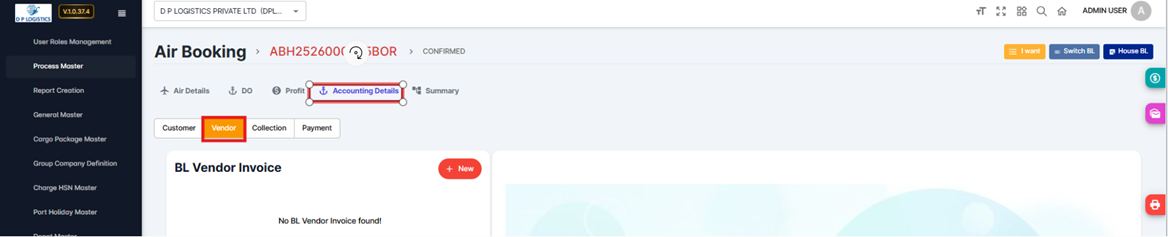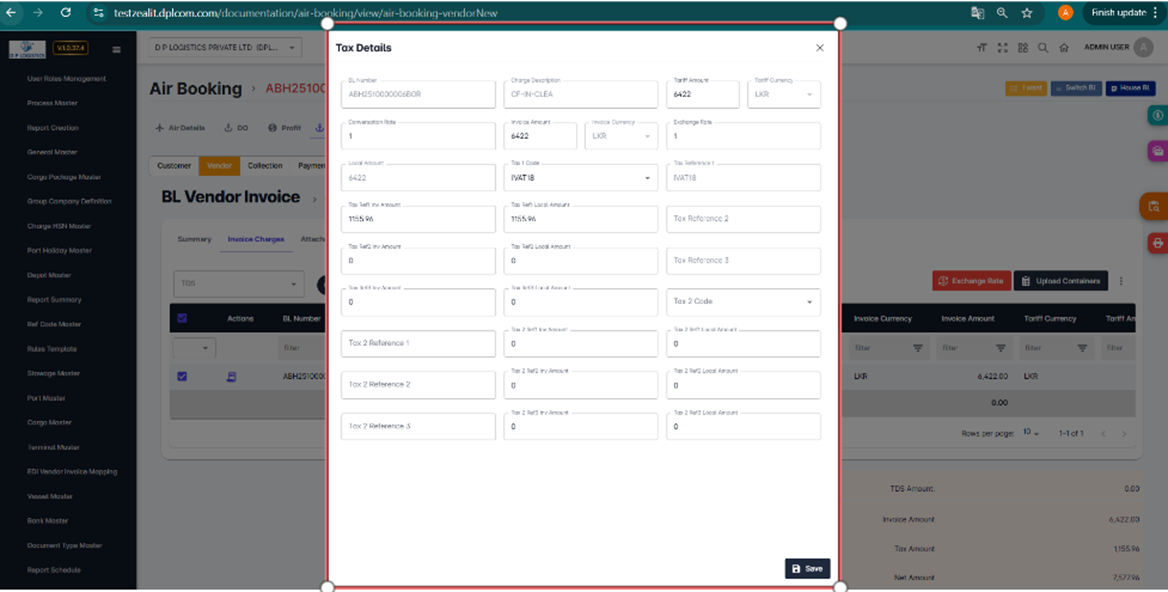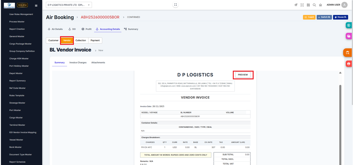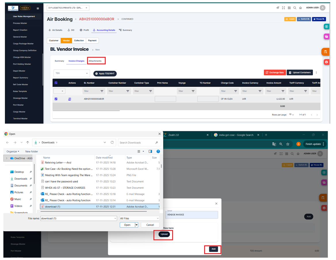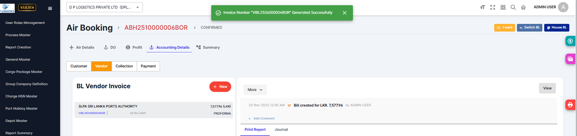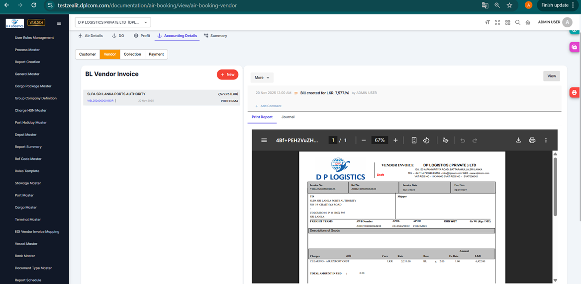 The Air Booking Vendor Invoice module in ZEALIT 2.0 enables users to generate vendor-side invoices against a confirmed Air Booking BL.