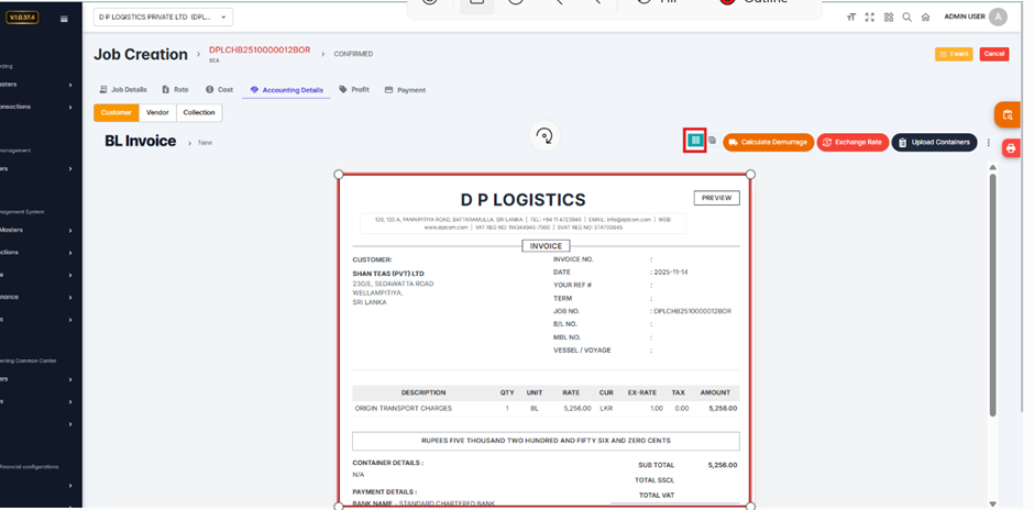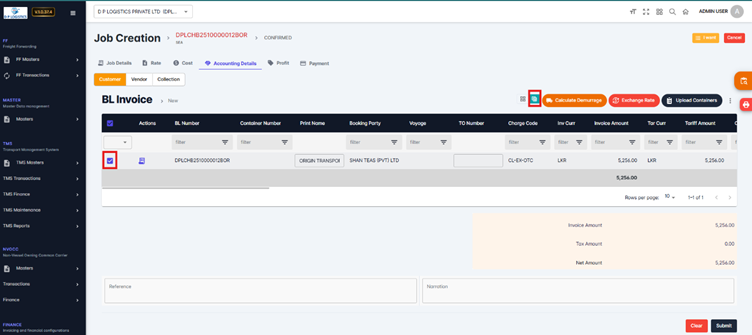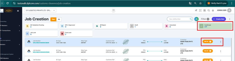 Navigate to the job and select the BL Number (applicable for both SEA and AIR modules).
