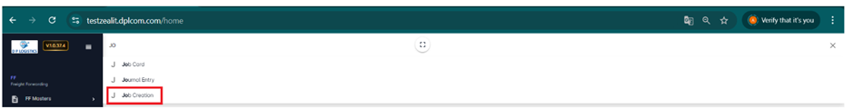 Step 3: Navigate to Job Creation using any of the following: