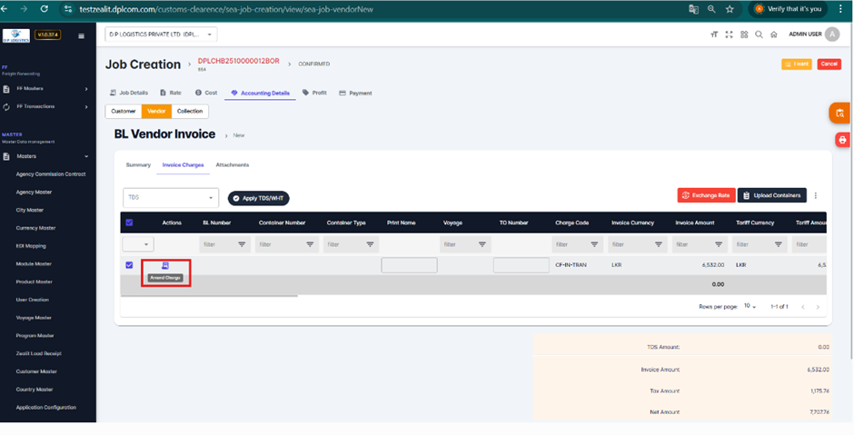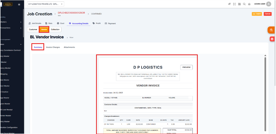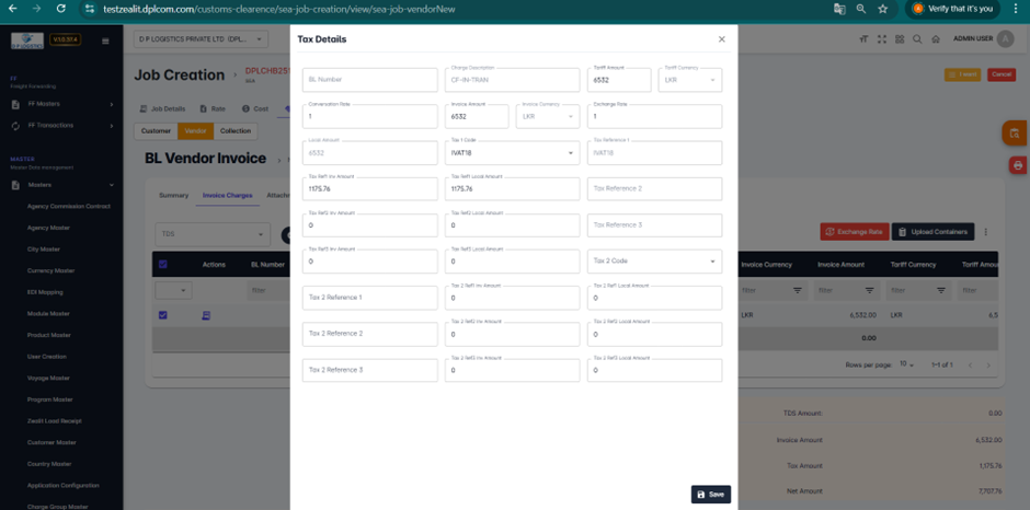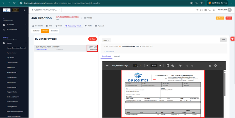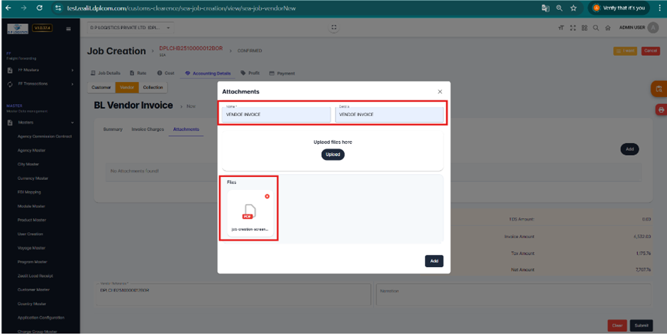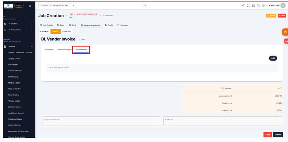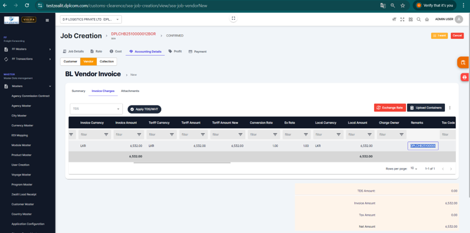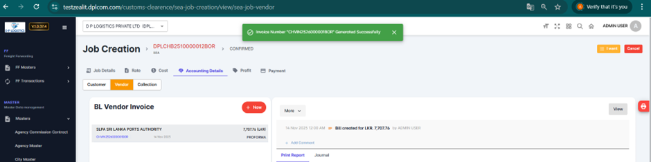 The CHB Job Creation Vendor Invoice module in ZEALIT 2.0 enables users to generate Vendor Invoices once the booking has been confirmed.