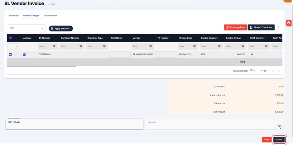 | Invoice not generating | Mandatory fields missing | Ensure all vendor and charge details are filled |