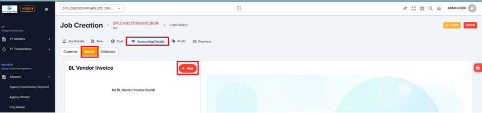 This feature allows the user to create vendor invoices directly for an exact BL Number from the Accounting Details tab.