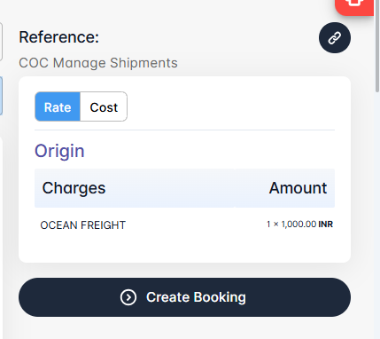 The Rate and Cost provided in the COC Rate Request are automatically populated in the Rate & Cost tab of the booking.