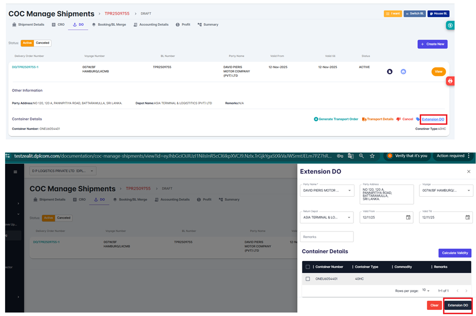A DO Extension refers to extending the validity period of an existing Delivery Order when the consignee is unable to take delivery of the cargo within the original DO validity date.