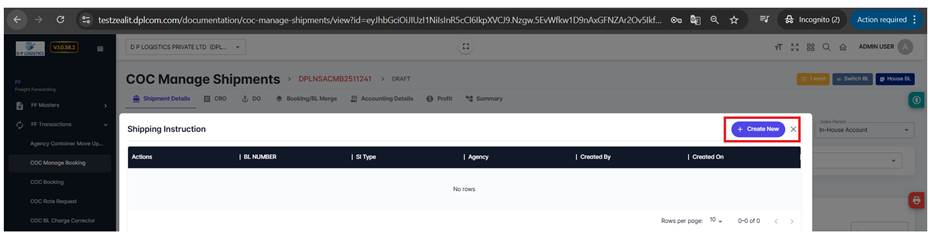4.3 Creating a New COC Manage Shipment