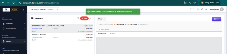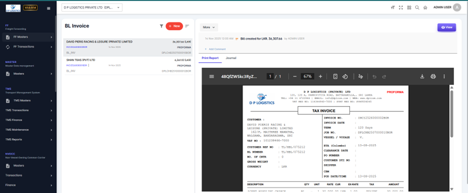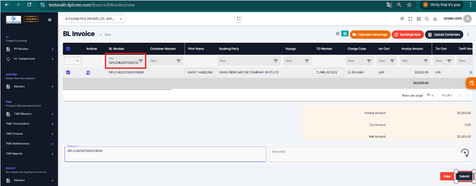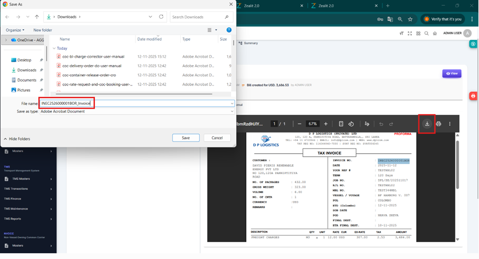 The CHB BL Invoice module in ZEALIT 2.0 enables users to generate customer invoices once the job has been created and confirmed.