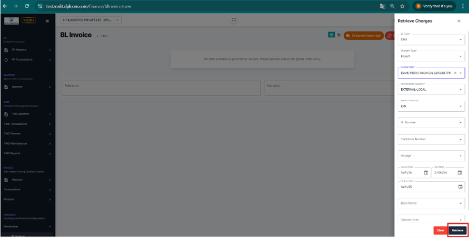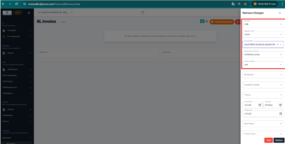 Once all mandatory fields are filled, proceed to retrieve BL-linked records.