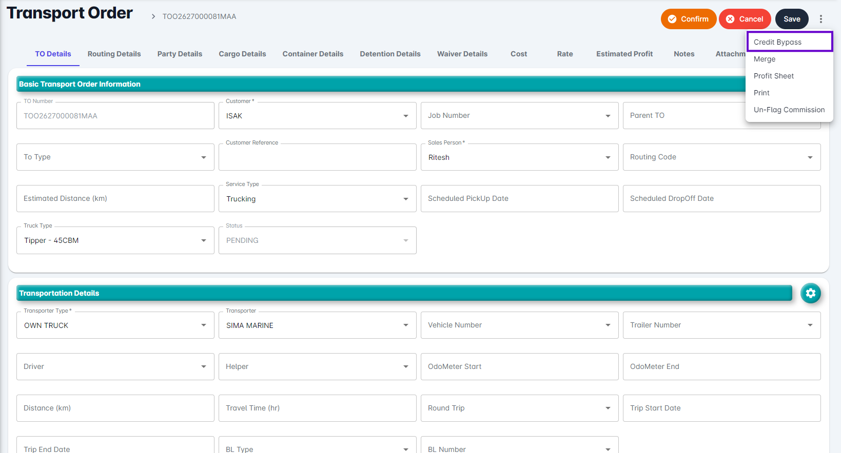 The Credit Bypass functionality allows authorized users to override credit restrictions when a customer’s outstanding balance has exceeded the set limit. This ensures operational continuity while maintaining financial oversight.