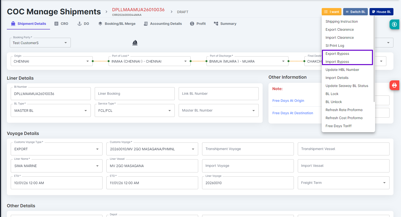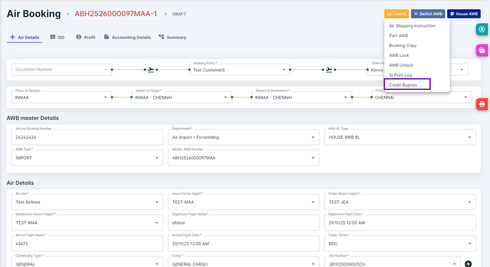 - Select the relevant module (Freight Forwarding, Air, CHB, GRN, GDN, TO).