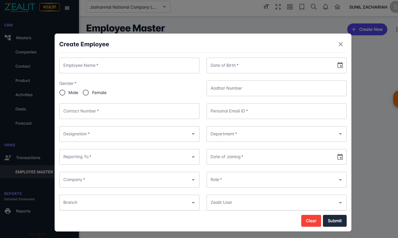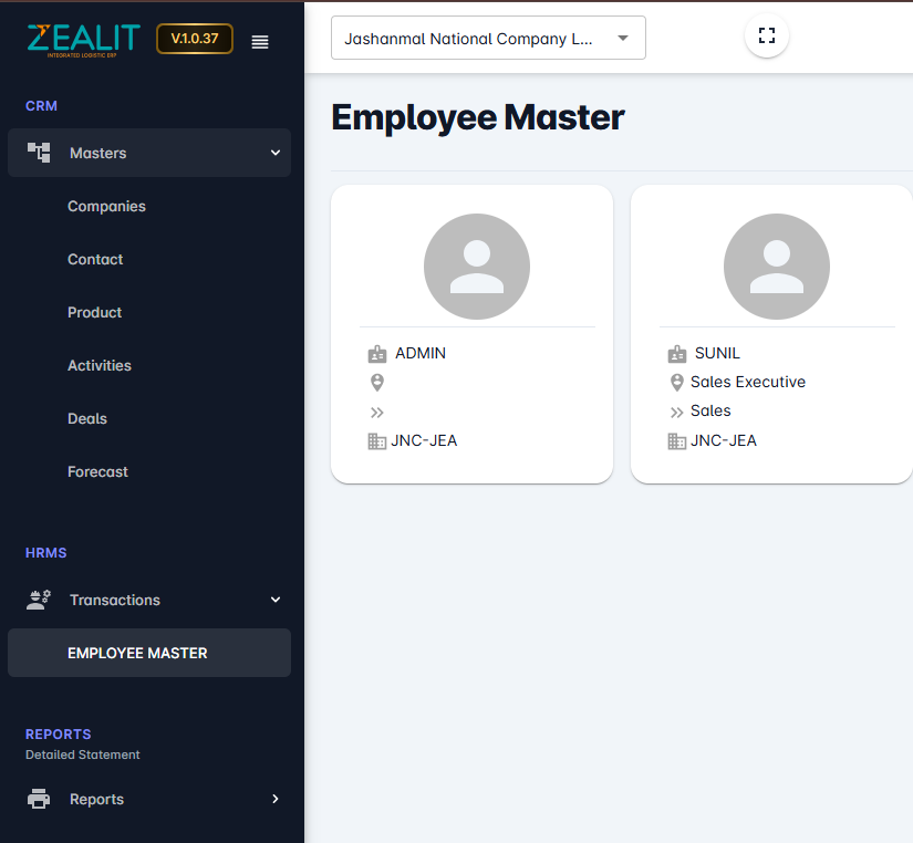 Path: CRM → HRMS →TRANSACTION → EMPLOYEE MASTER