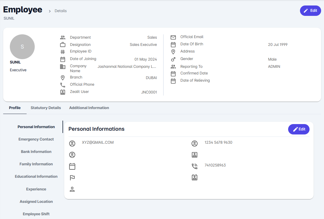 | Aadhaar Number | Enter 12-digit Aadhaar number (for Indian employees) |
