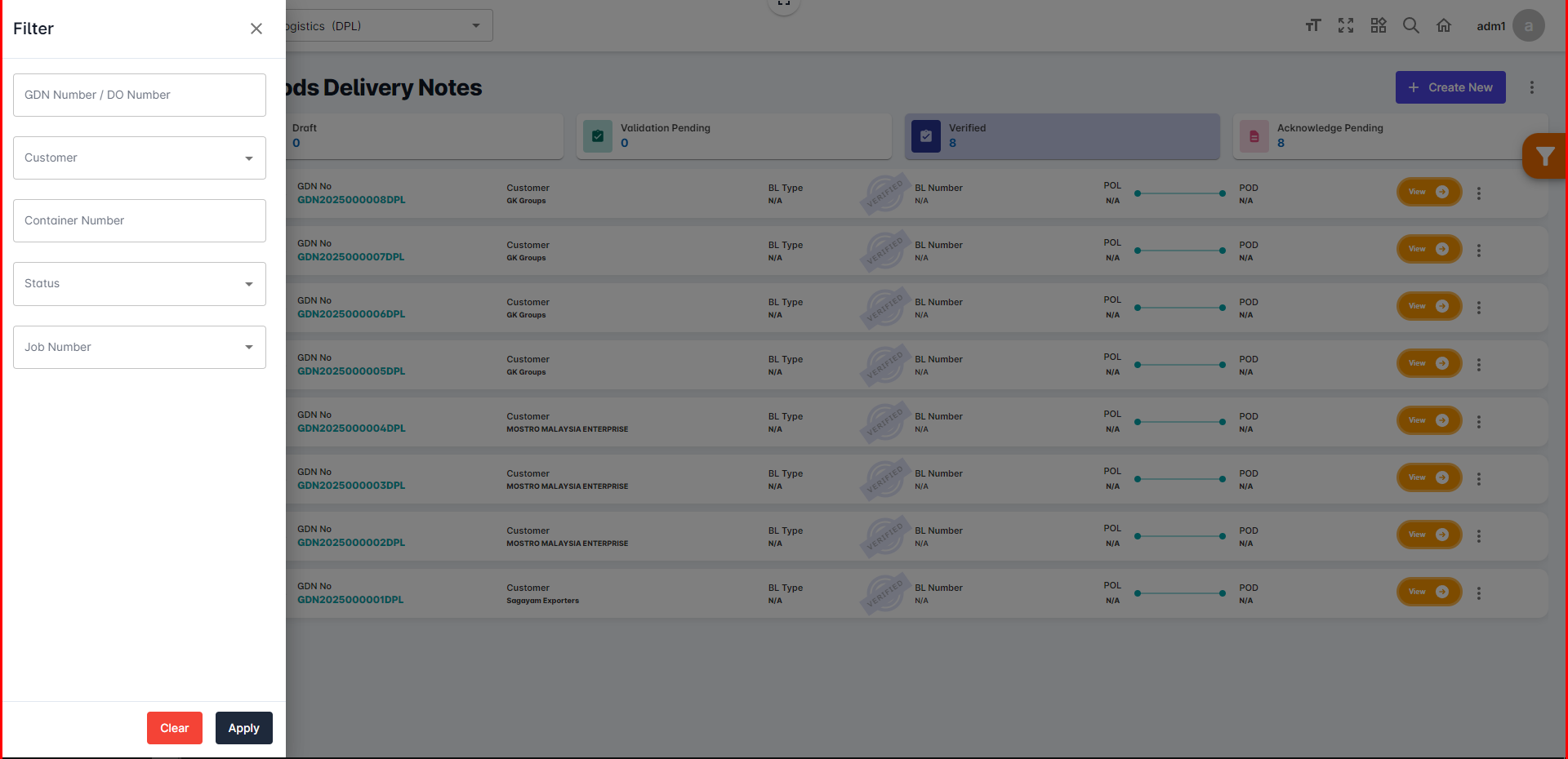 Go to Warehouse Module → Goods Delivery Notes (GDN).