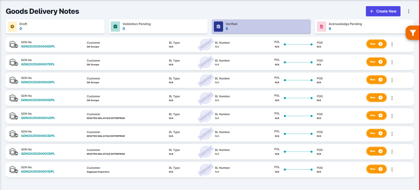 Acknowledge Pending – GDNs pending customer acknowledgment.