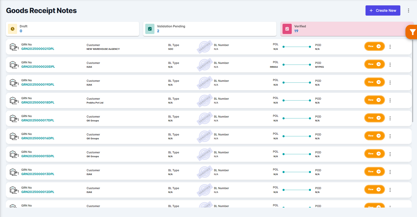 | Validation Pending | GRN entries that are created but not yet verified. |