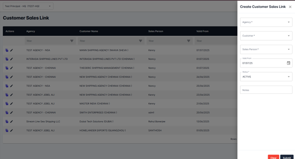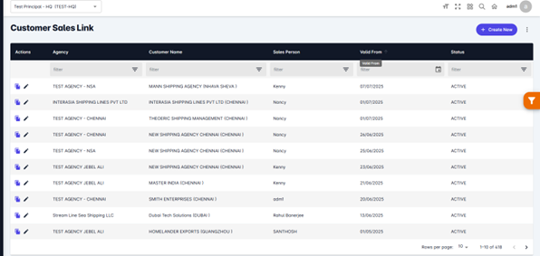 The Customer Sales Link module allows users to associate customers with salespersons and agencies, ensuring clear ownership, performance tracking, and responsibility allocation within the sales process. This mapping enhances accountability and visibility for customer engagement.
