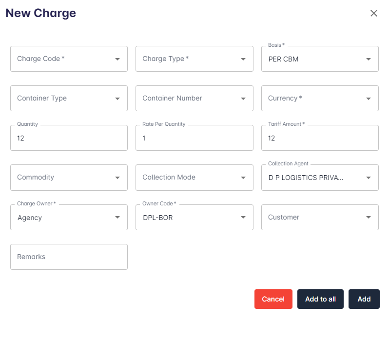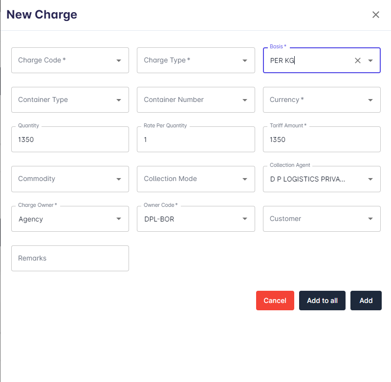 | Quantity field not visible | Ensure charge basis is Per CBM or Per KGS |