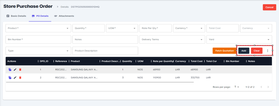 Adding Products to PO