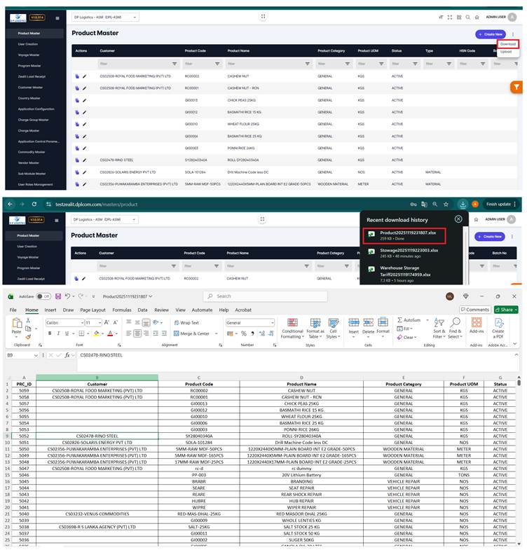Product Master Excel sheet will be downloaded and can be viewed locally.