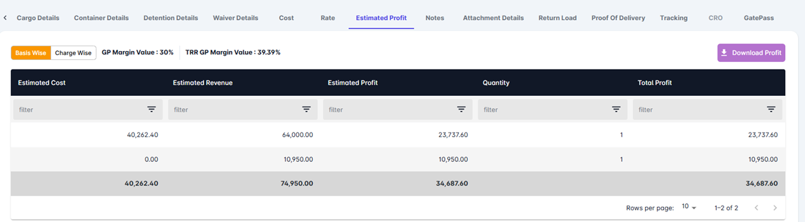 Specifies the truck/container type (Ex: 20FT, 40FT, 40FT