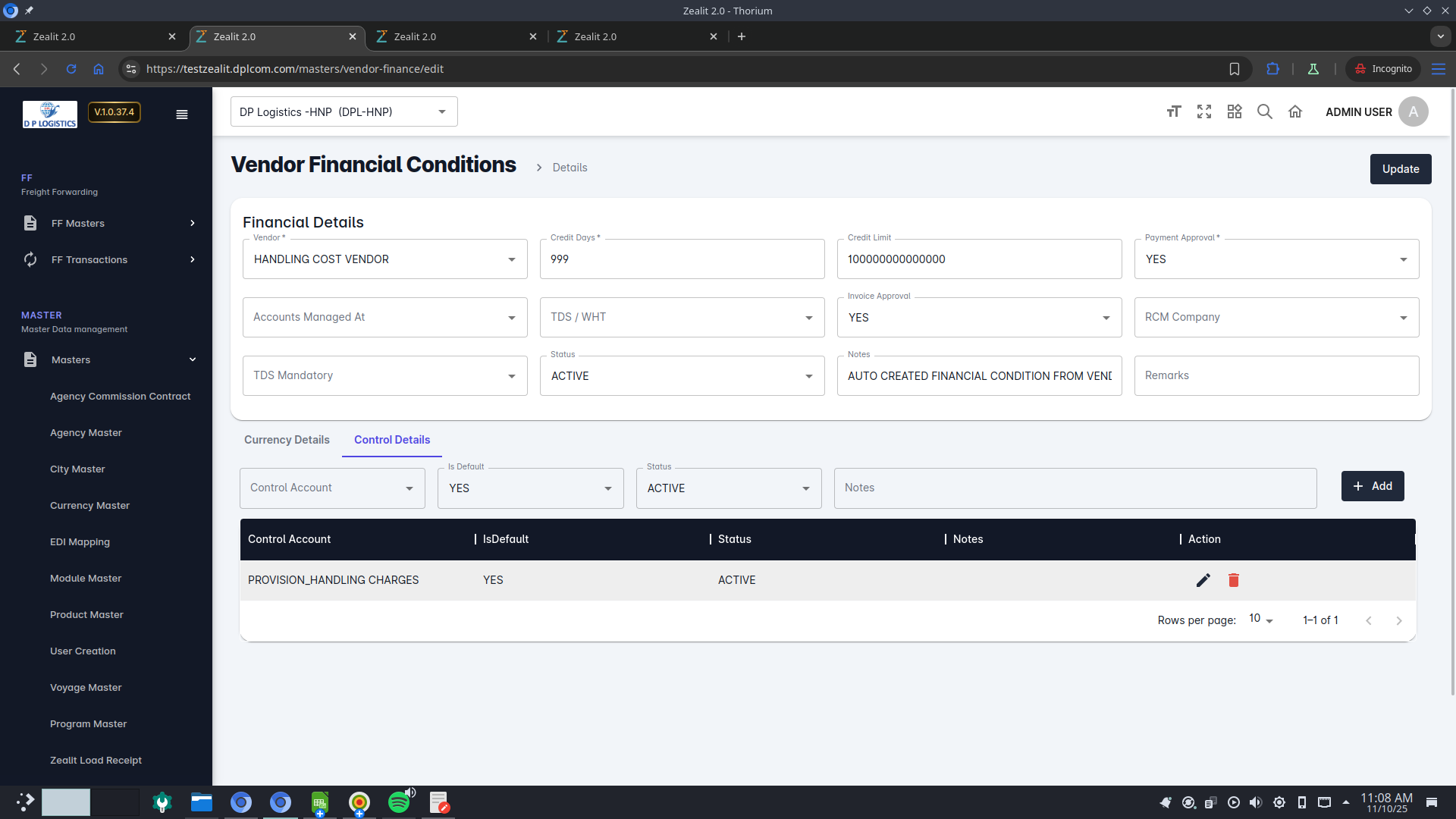 Modules Required: Charge Master, Vendor Master, Payable Control, Vendor Financial Conditions