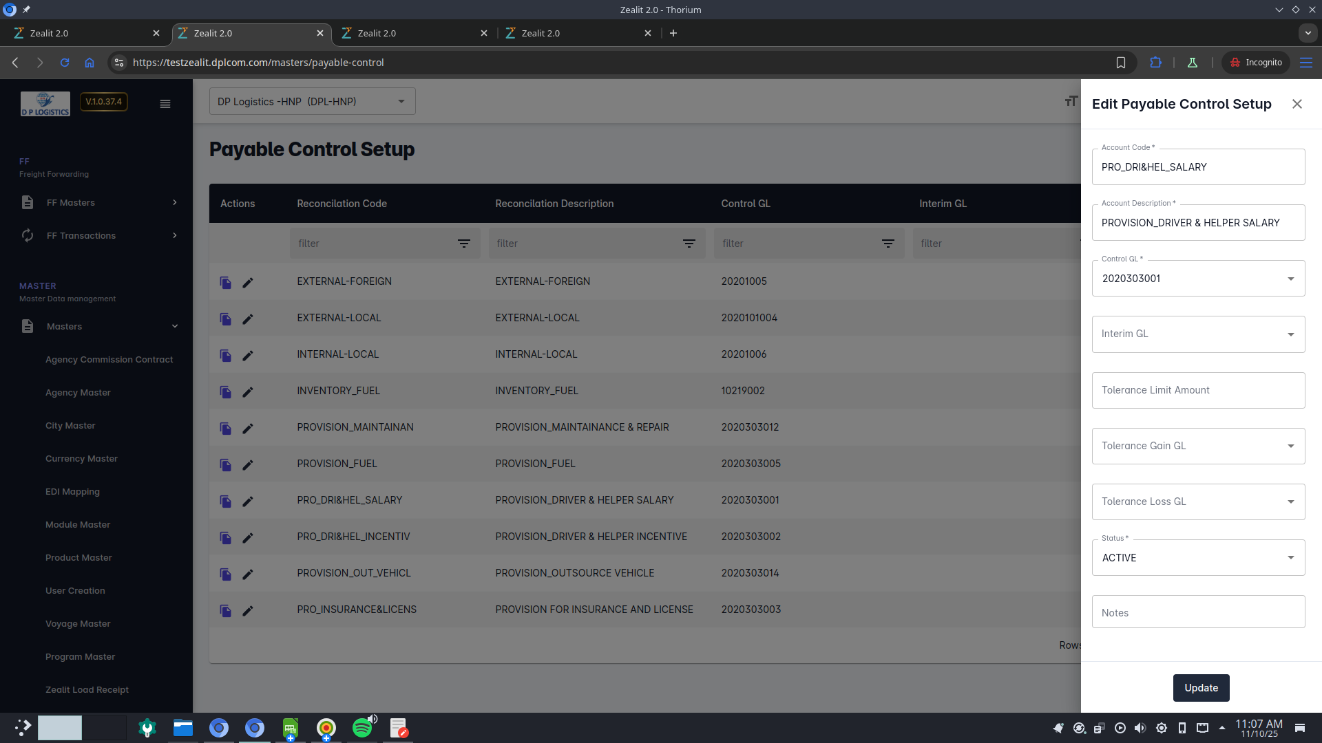 Configure this setup by navigating to Finance → Payable Control Setup.
