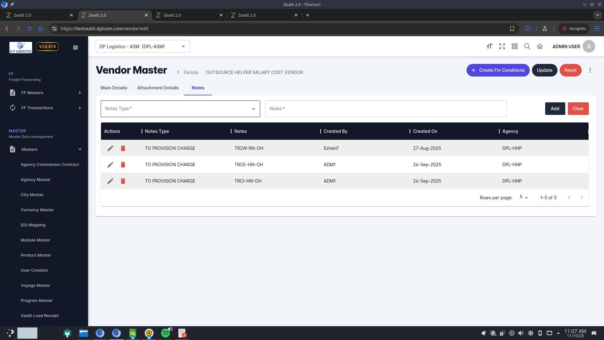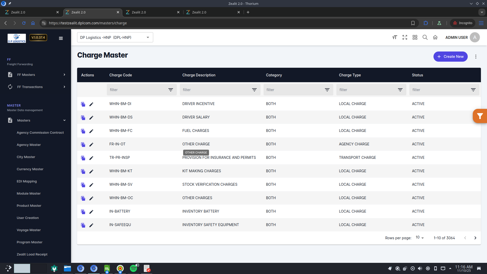 When multiple charge types exist for the same category (e.g., Handling Charges by weight, container type, etc.), group them under the same vendor.