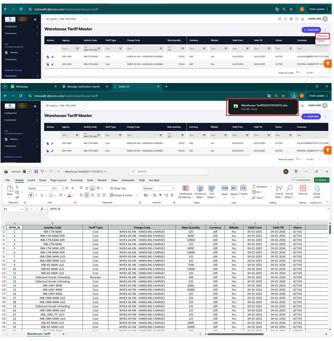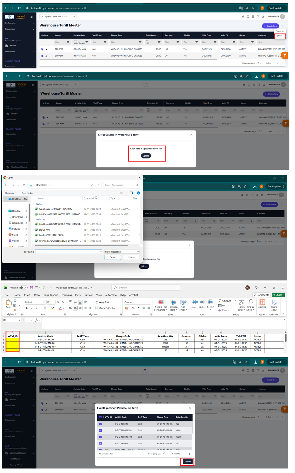 Choose Excel Uploader: Warehouse Tariff.