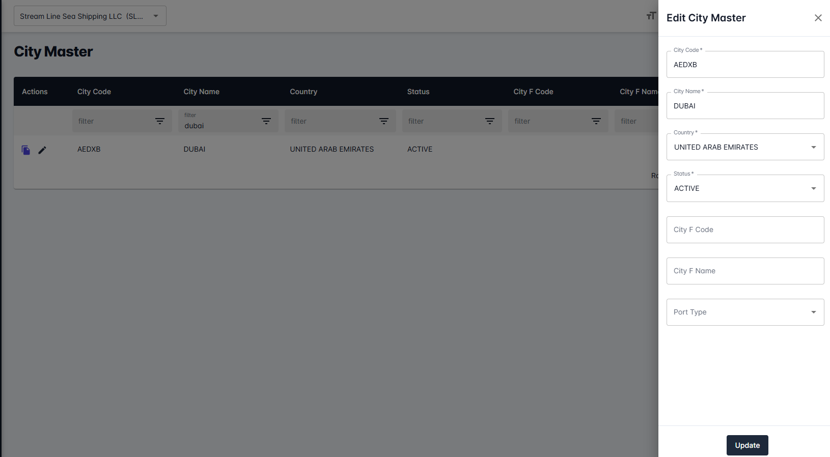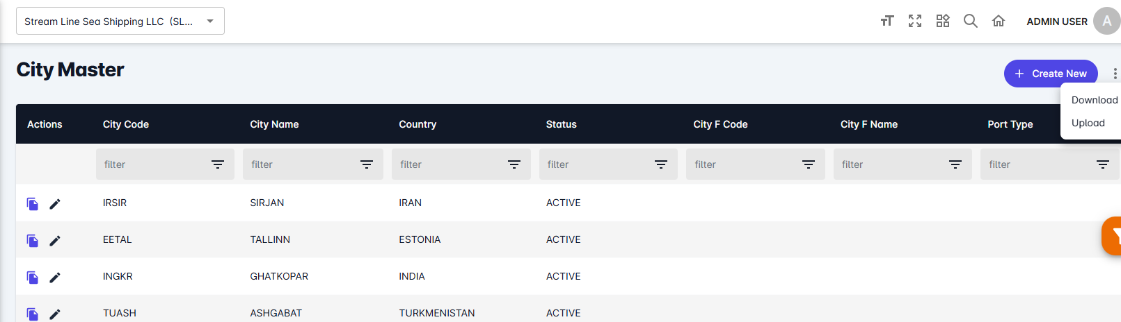 The City Master module helps users manage a standardized list of cities within the system. It ensures consistent usage across vendor, customer, transport, and logistics-related modules.