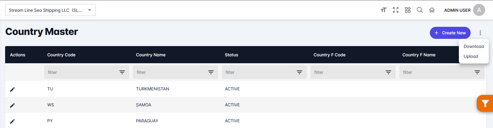 • Click on the “Upload” button to import multiple country entries in bulk.