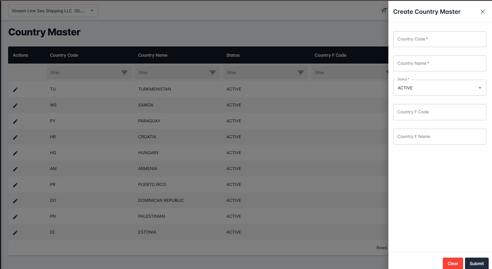 The Country Master module allows users to define, maintain, and manage the list of countries required for address, tax, trade, and operational reference across the system. This master data ensures consistency in country-related entries used in vendor, customer, and logistics modules.